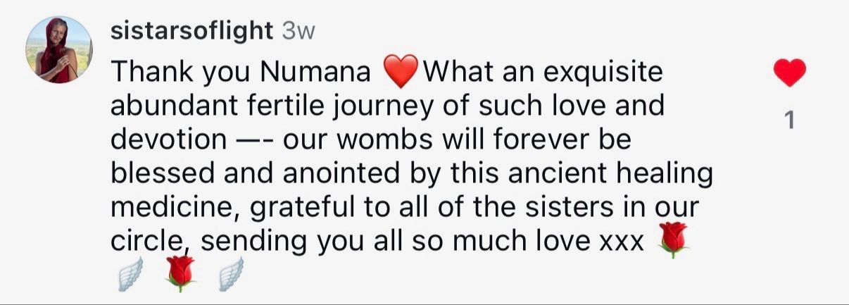 “It's an absolute honor to be serving my clients with womb-healing rituals. In this training, Numana sees your highest self and can bring it out. I went from running my business as a fitness coach from primarily in my masculine energy and feeling so burned out. I have softened into my feminine expression, and moved through so many fears of what I am capable of. I am a wife, a mother of 2 and a business owner.”